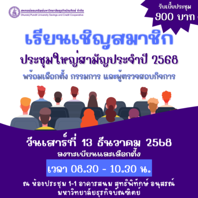 สหกรณ์ออมทรัพย์มหาวิทยาลัยธุรกิจบัณฑิตย์ จำกัด ขอเรียนเชิญสมาชิกเข้าร่วมประชุมใหญ่สามัญประจำปี 2568