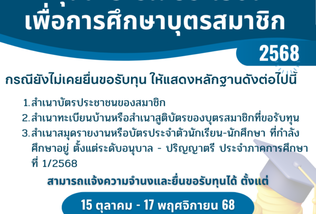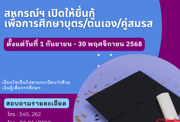 ประกาศการให้กู้เงินเพื่อการศึกษาของบุตร/ตนเอง/คู่สมรส (ก.ย.-พ.ย.68)